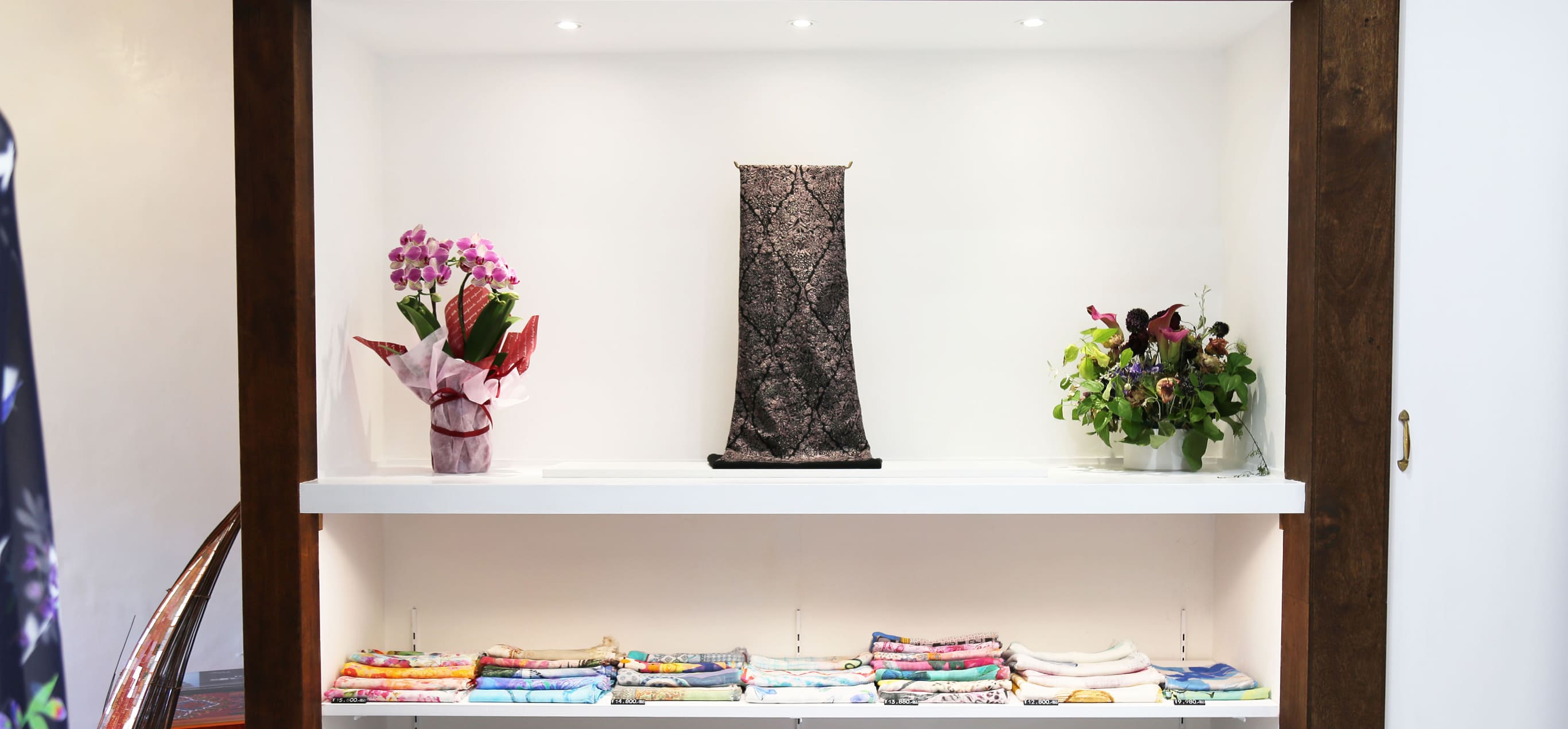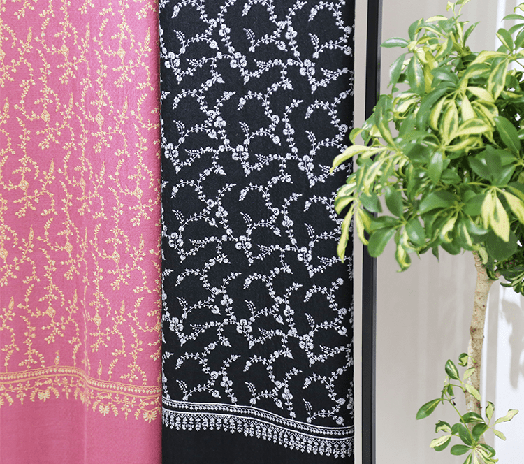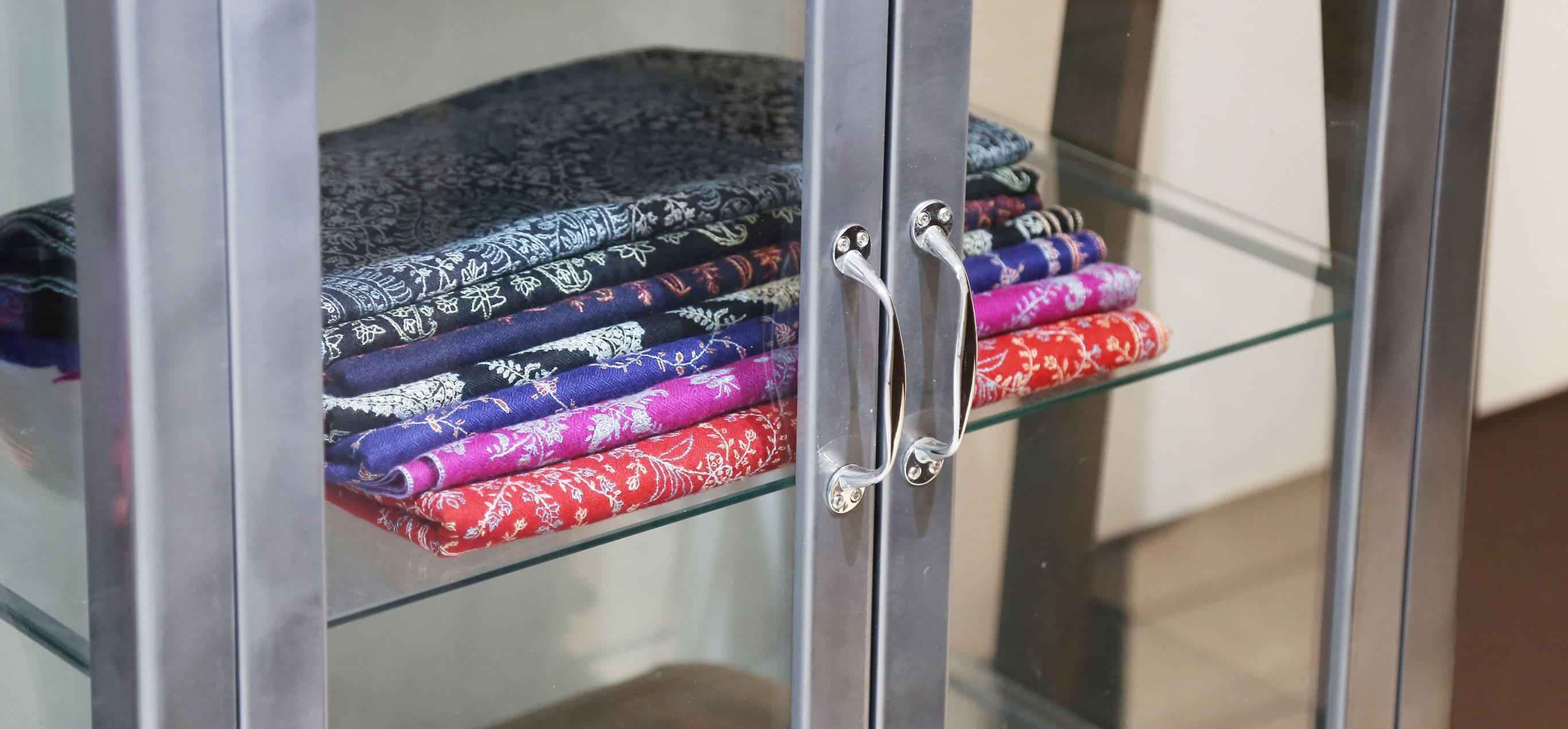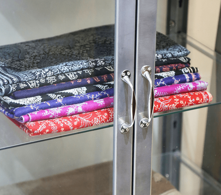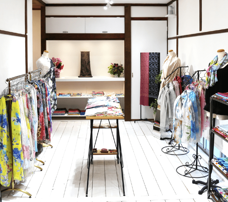 静かでゆったりとした空間でたくさんの種類のストールをご覧いただけます。もちろん、ストールの巻き方やコーディネートのアドバイス、大切な方へのプレゼント選びのお手伝いもさせていただきます。